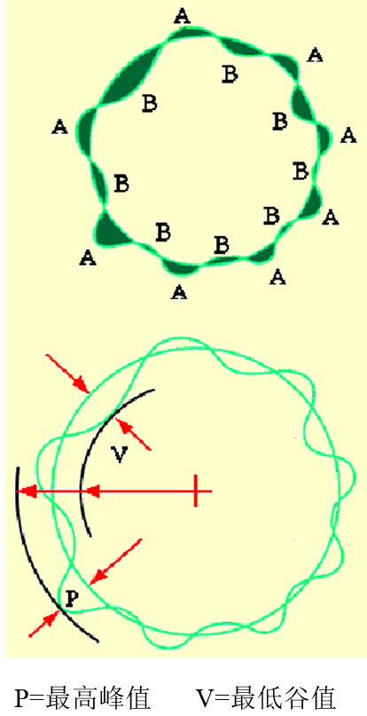 輪廓圖形可以用一傅立葉級數(shù)來表示。傅立葉定理表明任何周期的波形都可以用各正弦波分量之和表示。圓度輪廓諧波定義為每周的波動數(shù)。