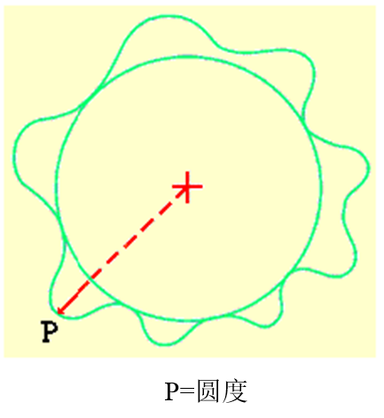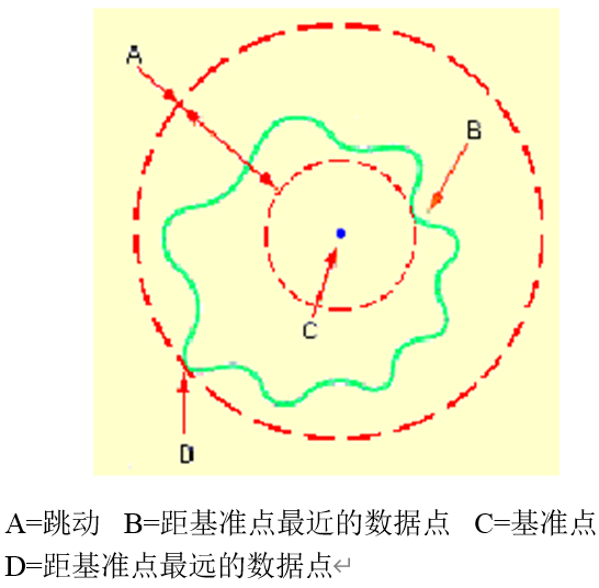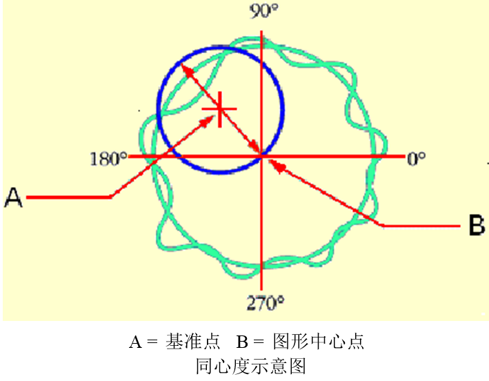 兩個同心圓的徑向間隔,這兩個圓與基準軸(或點)同心,并完全包容測量數(shù)據(jù),即指示器讀數(shù)的總變動量。(ISO 1101; DIN 7184; 第三部分)。
