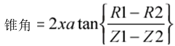 此項分析采用圓柱度分析時所用的最高平面和最低平面進行計算。對這兩個平面各擬合一個最小二乘圓,錐角根據(jù)其半徑和間距計算。