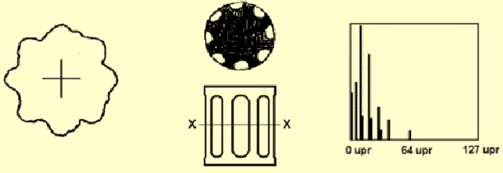 下圖所示的工件有8個均勻分布的槽。如果我們在X-X截面測量,典型的諧波圖形如下圖所示。