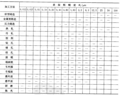 三、各種機(jī)械加工工藝獲得粗糙度等級