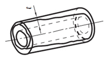圓柱度是限制實(shí)際圓柱面對理想圓柱面變動量的一項(xiàng)指標(biāo),它的公差帶是以公差值t為半徑差的兩個同軸圓柱面之間的區(qū)域,它控制了圓柱體橫剖面和軸剖面內(nèi)的各項(xiàng)形狀公差,諸如圓度、軸線直線度、素線直線度等。