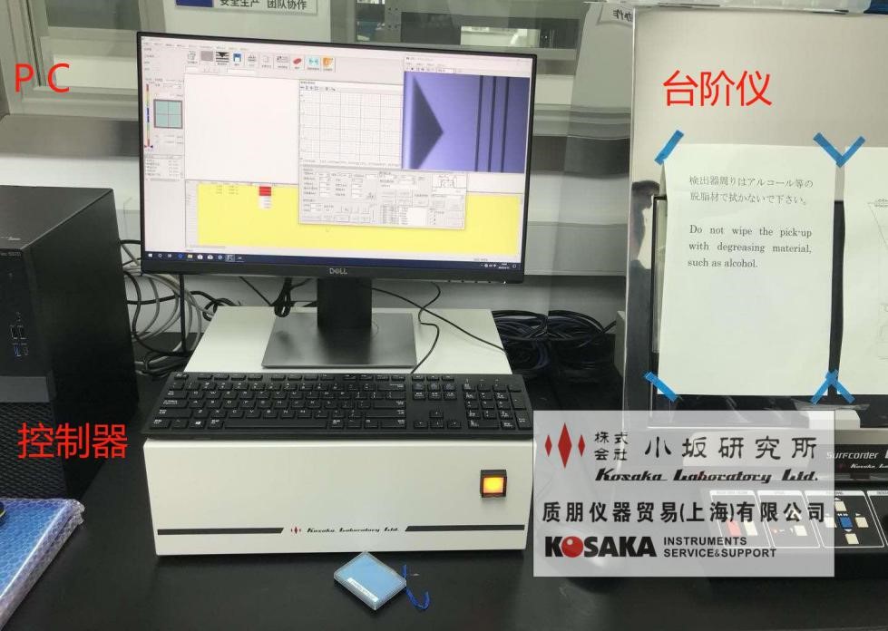 這一原理的實(shí)現(xiàn),是通過(guò)臺(tái)階儀本體、控制器和PC端協(xié)作完成的。下圖是Kosaka臺(tái)階儀ET200A型號(hào),左側(cè)上方為PC,左側(cè)下方為控制器,右側(cè)為臺(tái)階儀本體,三者之間彼此有相對(duì)應(yīng)的數(shù)據(jù)線連接。