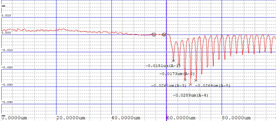 實(shí)際測(cè)量中,會(huì)受到臺(tái)階儀運(yùn)行環(huán)境中的各類因素的干擾和樣品本身均一性的限制,因此數(shù)據(jù)和彩頁(yè)、型錄上的書面參數(shù)有一定差距。例如,客戶的設(shè)備安裝環(huán)境,可能有電腦、電扇、空調(diào)、真空泵或者影響空氣運(yùn)動(dòng)和造成震動(dòng)的其他因素,在微米尺度的測(cè)量中,這些震動(dòng)的影響并不大,但到了數(shù)十納米時(shí),這些因素對(duì)測(cè)量結(jié)果的影響就顯現(xiàn)出來(lái)了;除此之外,一些使用者自身生產(chǎn)的樣品表面本身均一性水平就不高,毛刺、坑洼多見。在這種情況下,即使臺(tái)階儀精度再好,穩(wěn)定性再優(yōu)良,也無(wú)法達(dá)到設(shè)備書面參數(shù)的水平。