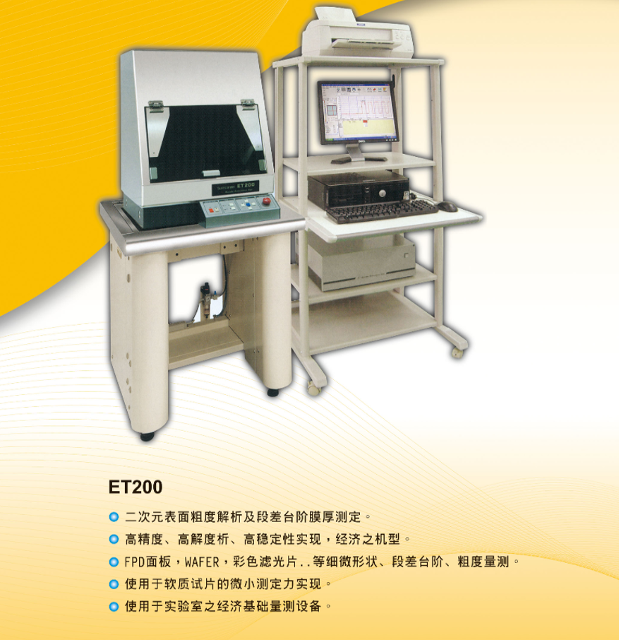 日本進(jìn)口KOSAKA 臺(tái)階儀,有ET200A,ET4000系列和ET10000,分別對(duì)應(yīng):學(xué)術(shù)和科研單位的膜厚測(cè)量(如工程系、材料系和機(jī)電系材料測(cè)量需求),面板、光伏、半導(dǎo)體等產(chǎn)業(yè)工廠自動(dòng)化測(cè)量和超大型工廠全自動(dòng)化測(cè)量的需求。