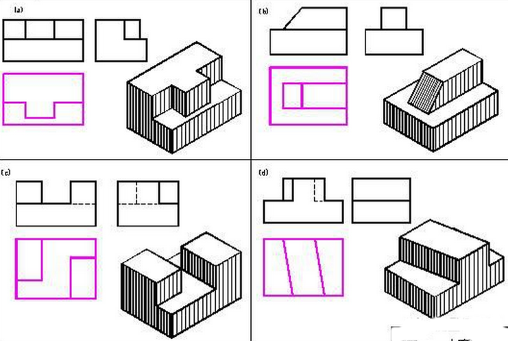 下面我們將給大家總結(jié)了以下三視圖的觀察圖,能想象出其他所有視圖的樣子嗎?