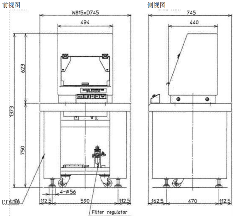 下面以KOSAKA 臺(tái)階儀為例,介紹一下設(shè)備的三視圖: